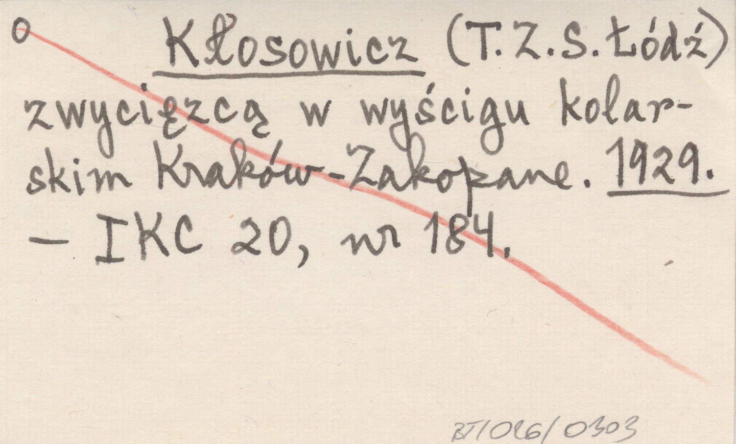 Kłosowicz (T.Z.S. Łódź) zwycięzcą w wyścigu kolarskim Kraków-Zakopane. 1929