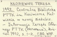 KŁOSIEWICZ Teresa 1992 Centralna Biblioteka PTTK im. Kazimierza Kulwiecia w nowej siedzibie.