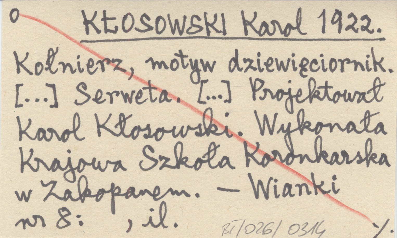 KŁOSOWSKI Karol 1922 Kołnierz, motyw dziewięciornik. [...] Serweta. [...] Projektował Karol Kłosowski. Wykonała Krajowa Szkoła Koronkarska w Zakopanem.