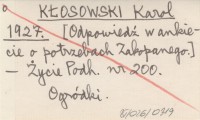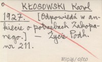 KŁOSOWSKI Karol 1927 [Odpowiedź w ankiecie o potrzebach Zakopanego.].