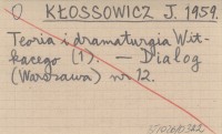 KŁOSSOWICZ J. 1959 Teoria i dramaturgia Witkacego (1).
