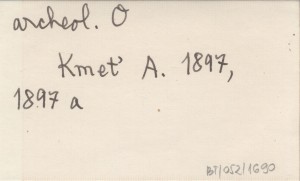 Sbor. MSS, 2, nr 1: 137-152, il. Zbieranie przedmiotów i danych z zakresu archeologii, etnografii, językoznawstwa i onomastyki. S. 142 (il.): wykopalisko z Górnego Kubina na Orawie. Wydrukowano też osobno (odb.?) → jw. 1897 a