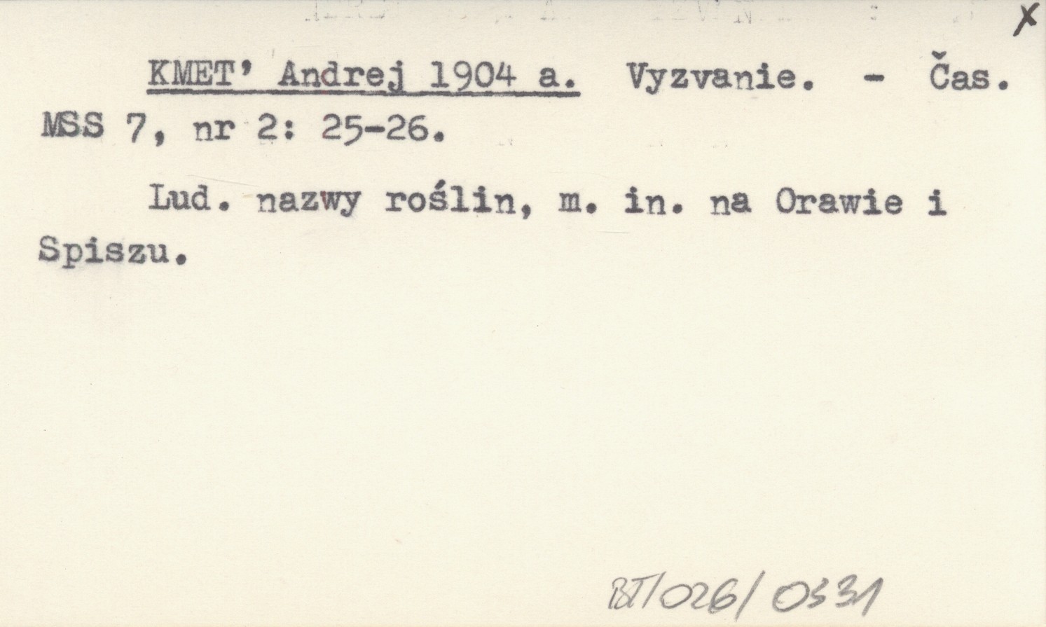 Čas. MSS, 7, nr 2: 25-26. Lud. nazwy roślin, m.i. na Orawie i Spiszu.