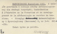 KMICIKIEWICZ Eugeniusz 1955 Z dziejów powstania i rozwoju służby meteorologicznej dla obsługi turystyki. Contribution á l'histoire de la formation et du developpement de la météorologie au service du tourisme.