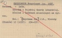 KMIETOWICZ Franciszek 1931 Wyniki badań stężenia jonów wodorowych w niektórych krajowych wodach mineralnych.