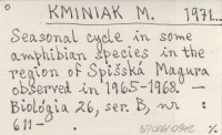 KMINIAK M. 1971... Seasonal cycle in some amphibian species in the region of Spišská Magura observed in 1965-1968.