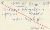 KNAPIUS Grzegorz 1621 Thesaurus polono-latino-graecus.