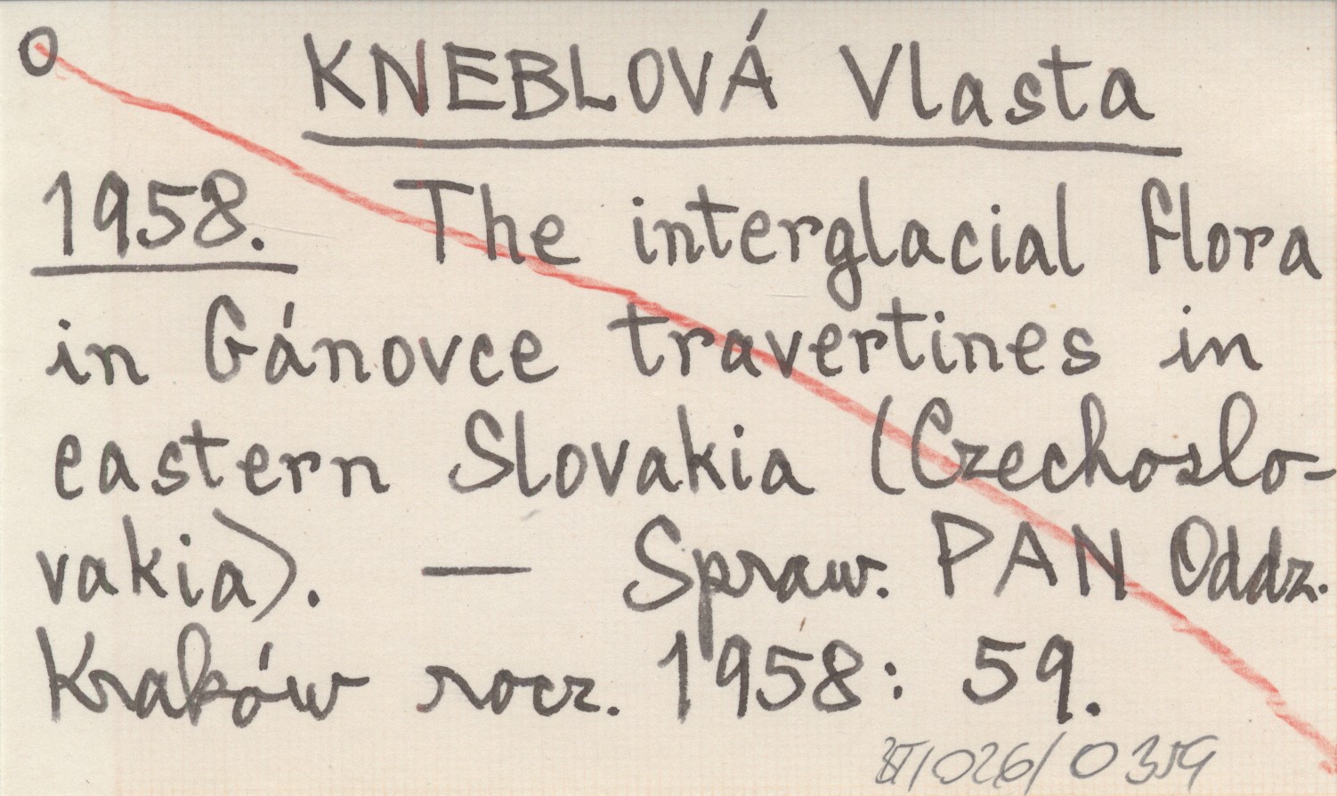 KNEBLOVÁ Vlasta 1958 The interglacial flora in Gánovce travertines in eastern Slovakia (Czechoslovakia).