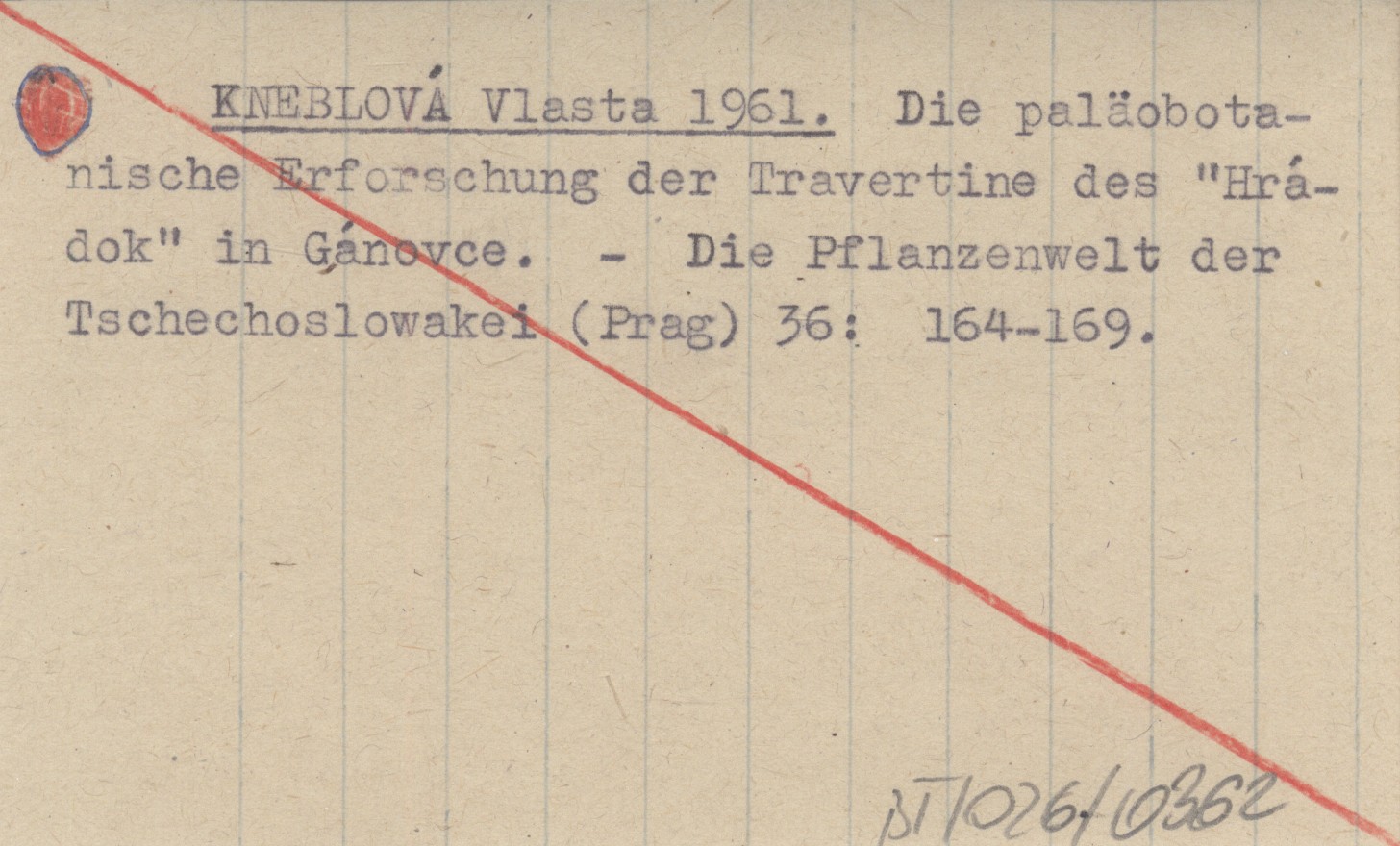 KNEBLOVÁ Vlasta 1961 Die paläobotanische Erforschung der Travertine des "Hrádok" in Gánovce.