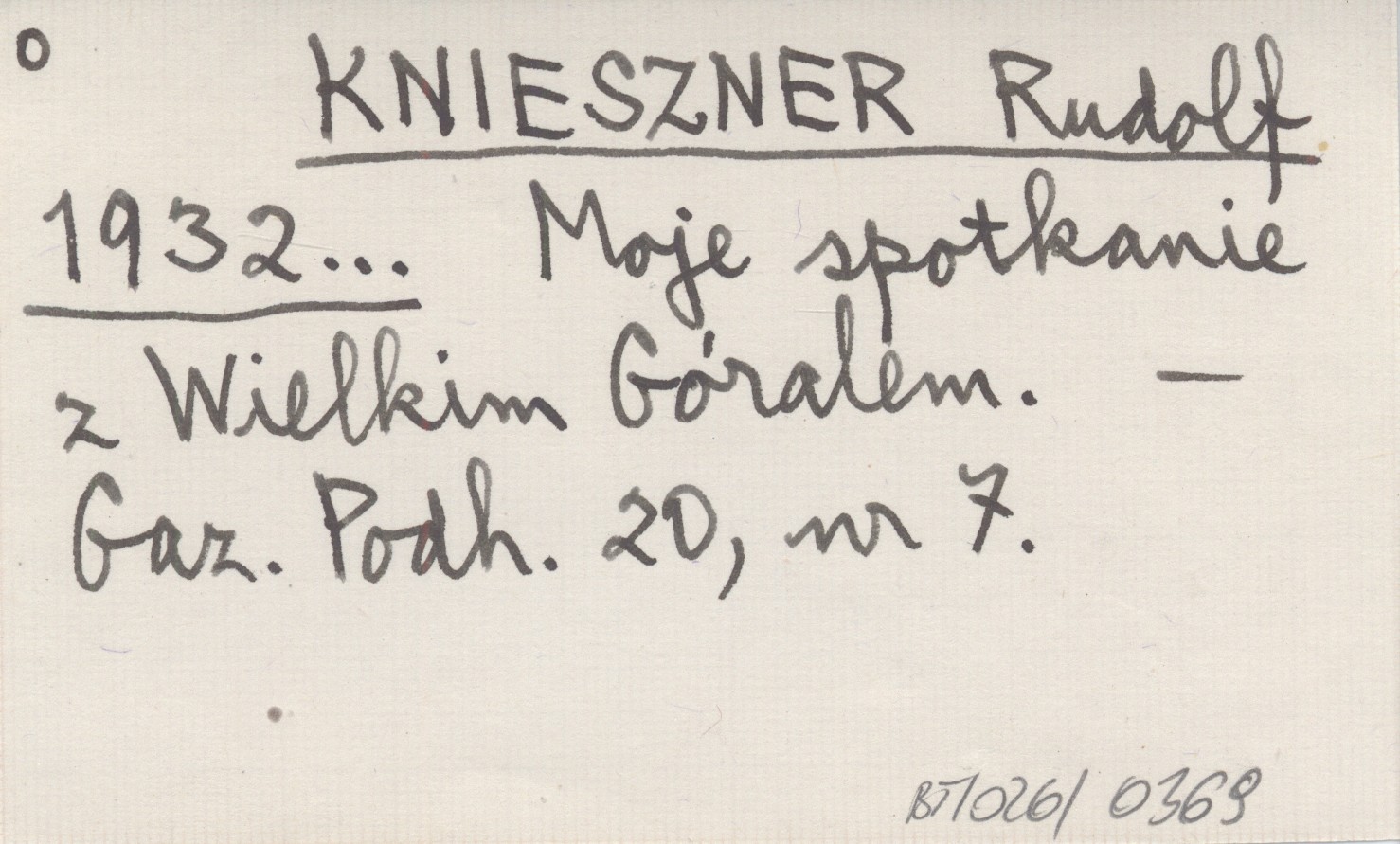 KNIESZNER Rudolf 1932... Moje spotkanie z Wielkim Góralem.