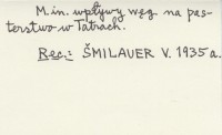 Ethnográphia-Népélet (Budapest) , 45: 62-73. M.in. wpływy węg. na pasterstwo w Tatrach. REC: ŠMILAUER V. 1935 a