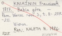 KNIAŹNIN Babia Góra. Do Pawła Czempińskiego, gdy objeżdżał góry krakowskie.