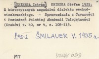 KNIEZSA St. [KNIEZSA István] 1935 b Z historycznych zagadnień dialektu wschodniosłowackiego. (Quelques problémes historiques du dialecte slovaque de l'est.).