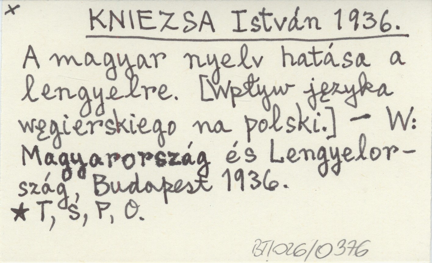 KNIEZSA István 1936 A magyar nyelv hatása a lengyelre. [Wpływ języka węgierskiego na polski.].