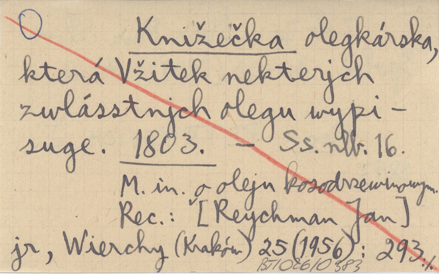 Knižečka olegkárska, která Vžitek nekterjch zwlásstnjch olegu wypisuge. 1803