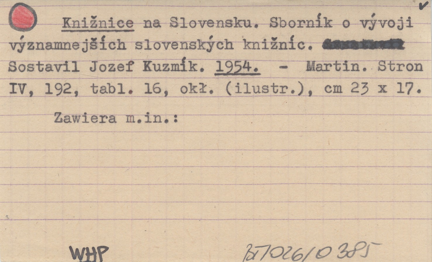 Knižnice na Slovensku. Sborník o vývoji významnejších slovenských knižníc. Sostavil Jozef Kuzmík. 1954