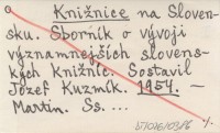 Knižnice na Slovensku. Sborník o vývoji významnejších slovenských knižníc. Sostavil Jozef Kuzmík. 1954