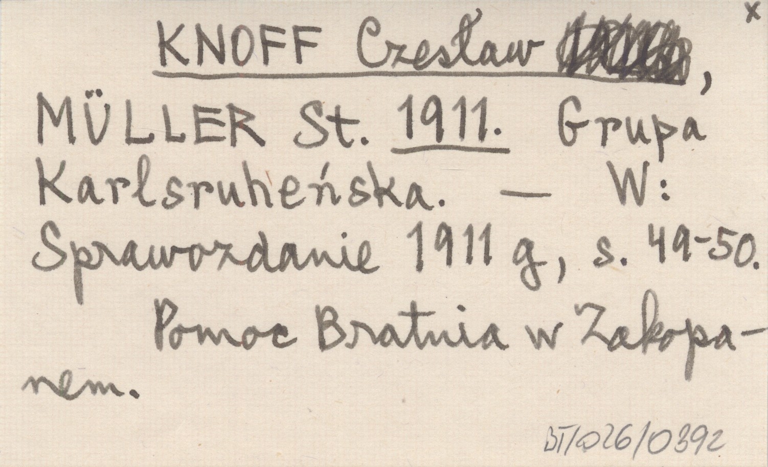 KNOFF Czesław MÜLLER, St. ; 1911 Grupa Karlsruheńska.