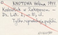KNOTOWA Helena 1947 Kościółek w Zakopanem.