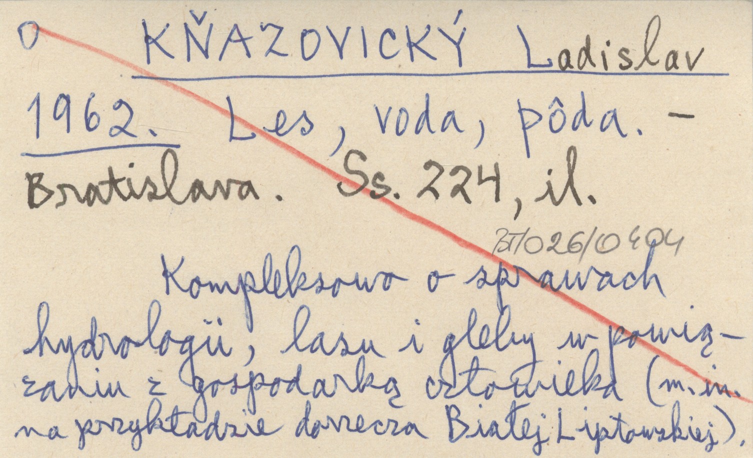 Bratislava , 224 s., il. Kompleksowo o sprawach hydrologii, lasu i gleby w powiązaniu z gospodarką człowieka (m.in. na przykładzie dorzecza Białej Liptowskiej).