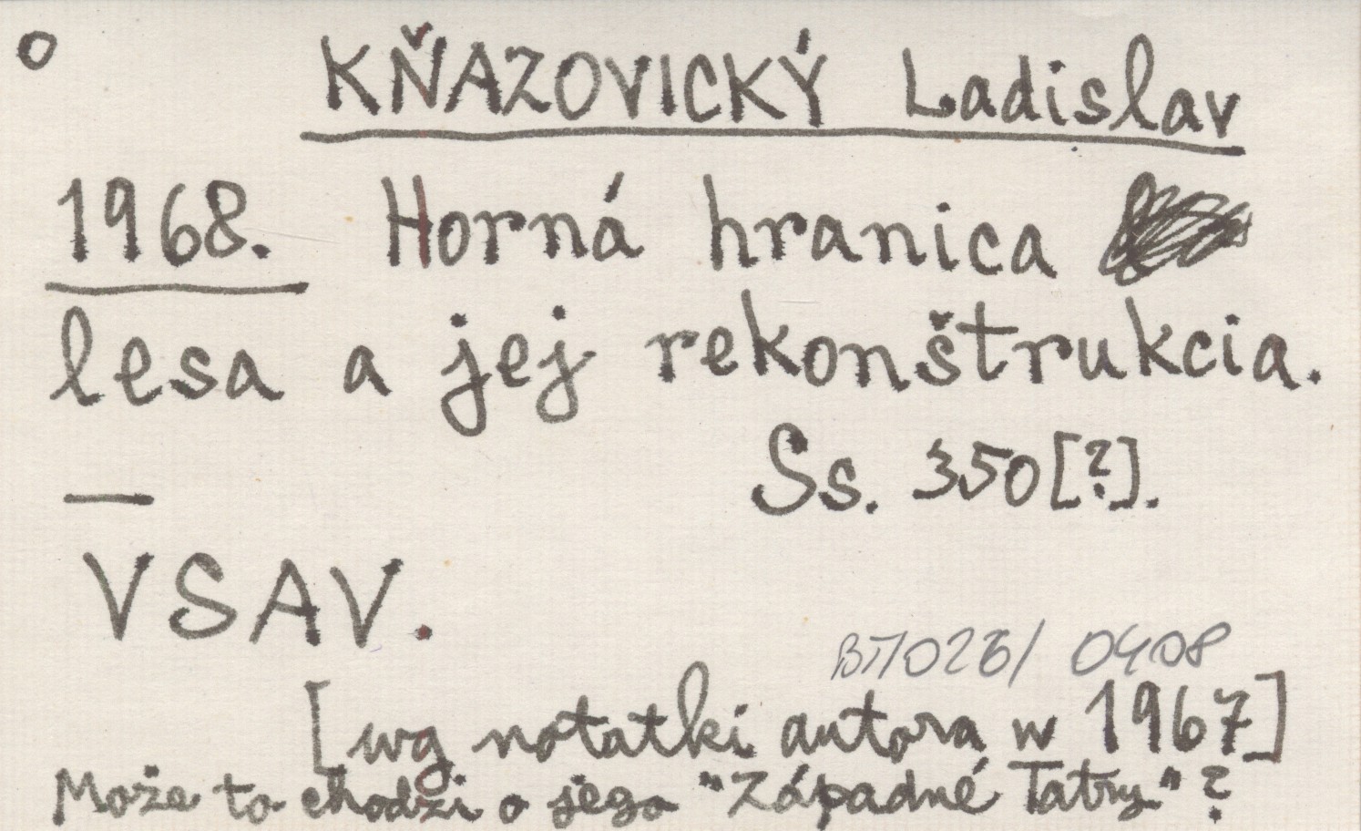 KŇAZOVICKÝ Ladislav 1968 Horná hranica lesa a jej rekonštrukcia.