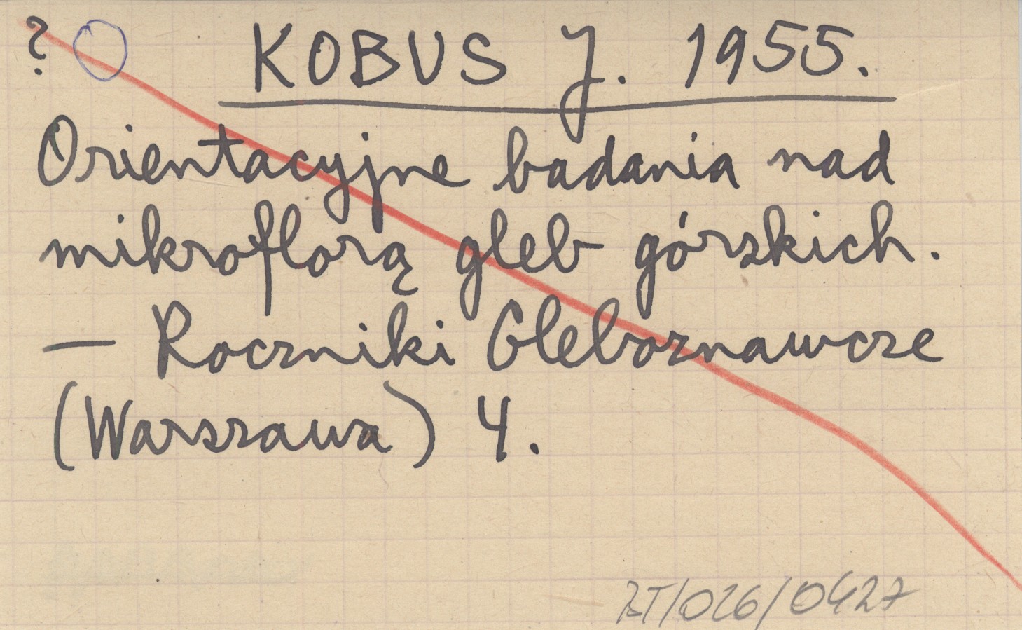 KOBUS J. 1955 Orientacyjne badania nad mikroflorą gleb górskich.