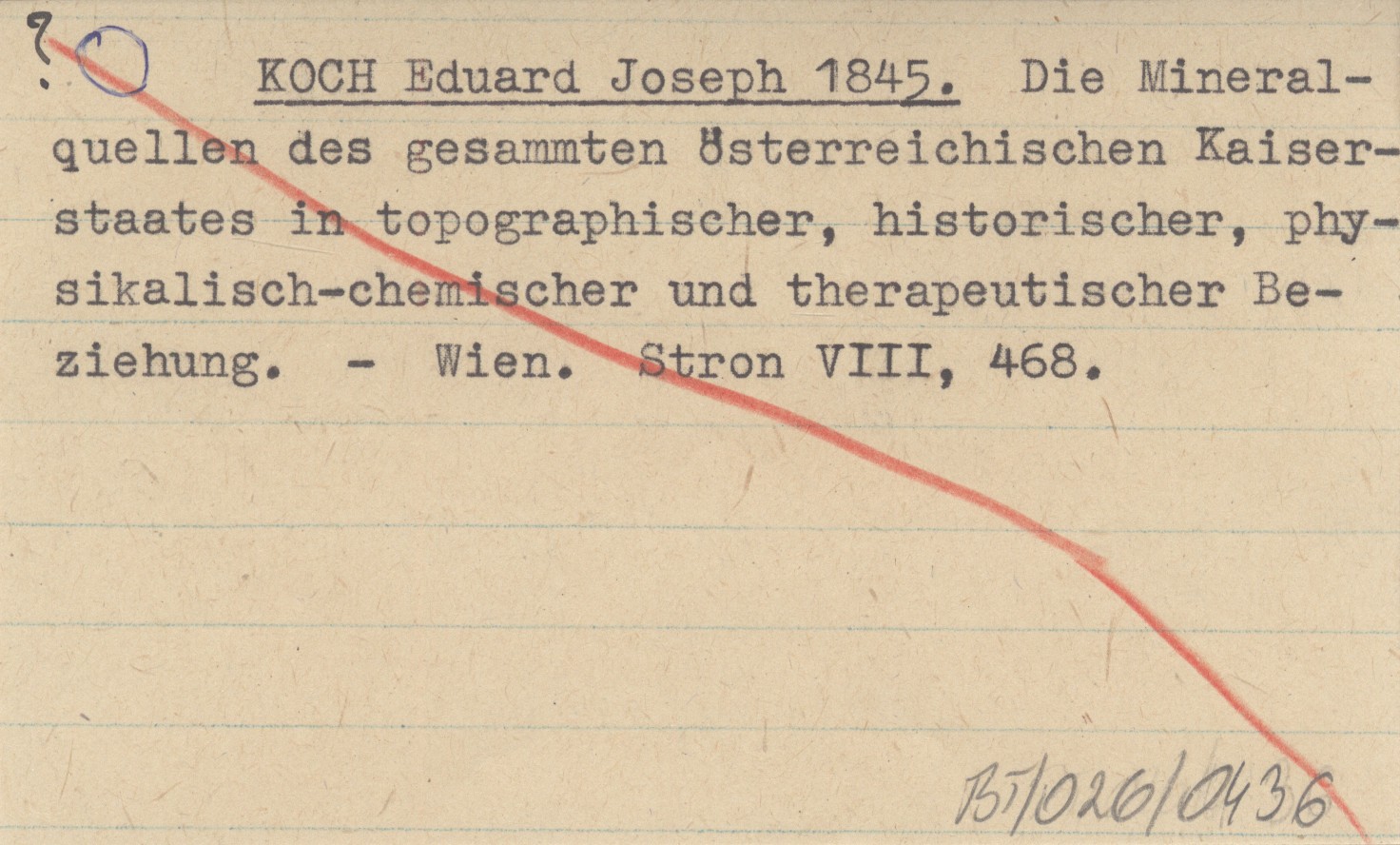 KOCH Eduard Joseph 1845 Die Mineralquellen des gesammten österreichischen Kaiserstaates in topographischer, historischer, physikalisch-chemischer und therapeutischer Beziehung.
