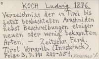 KOCH Ludwig 1876 Verzeichniss der in Tirol bis jetzt beobachteten Arachniden nebst Beschreibungen einiger neuen oder wenig bekannten Arten.