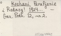 Kochani Parafjanie i Rodacy! 1924...