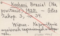 Kochani Bracia! (Na powitanie.). 1925