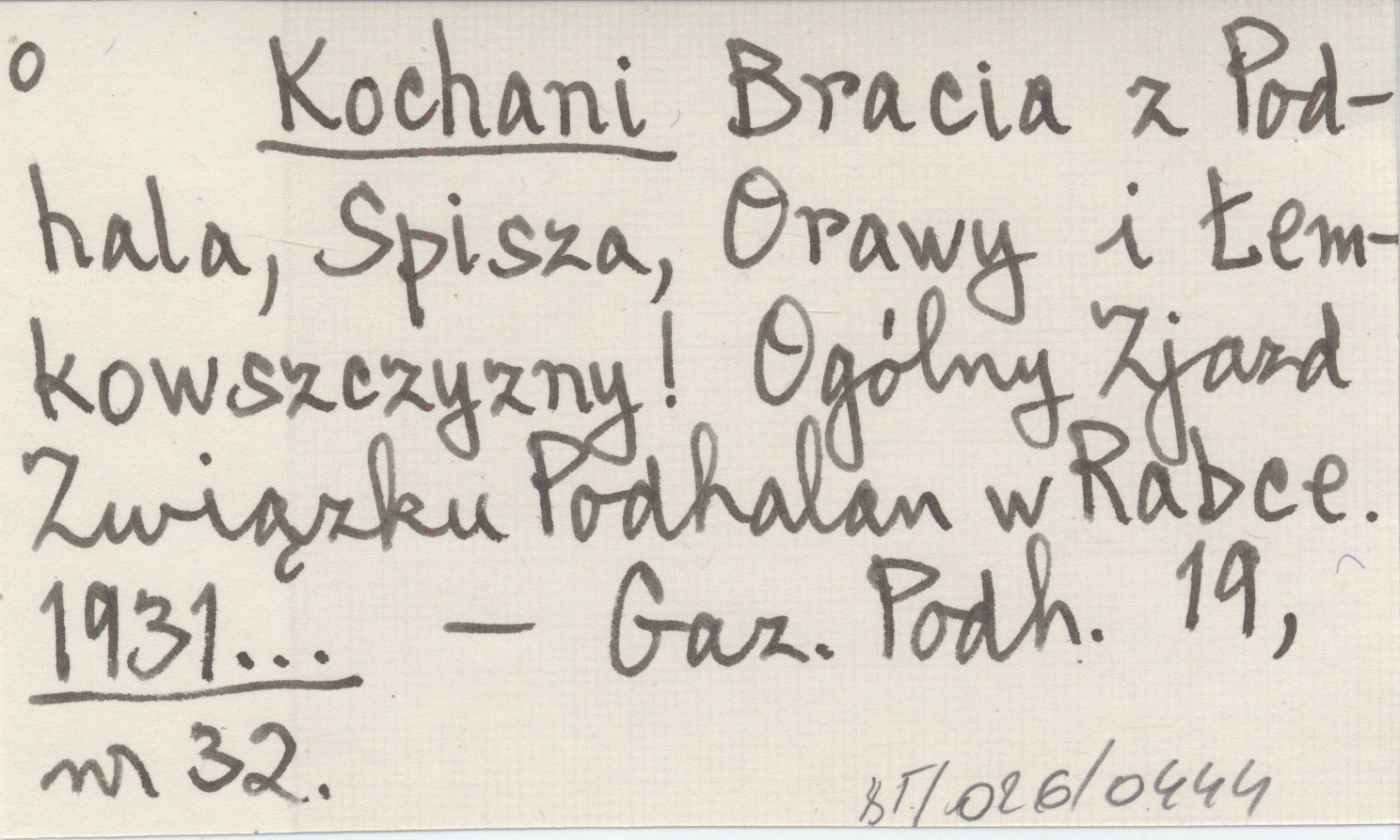 Kochani Bracia z Podhala, Spisza, Orawy i Łemkowszczyzny! Ogólny Zjazd Związku Podhalan w Rabce. 1931...