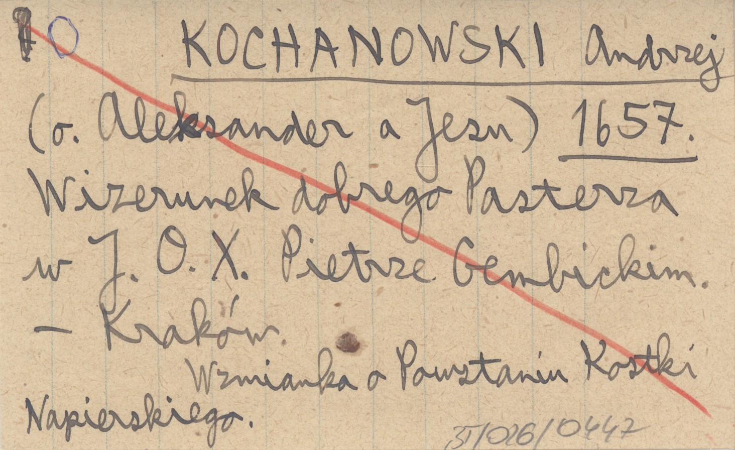 Aleksander a Jesn KOCHANOWSKI Andrzej 1657 Wizerunek dobrego Pasterza w J. O. X. Pietrze Genbickim.