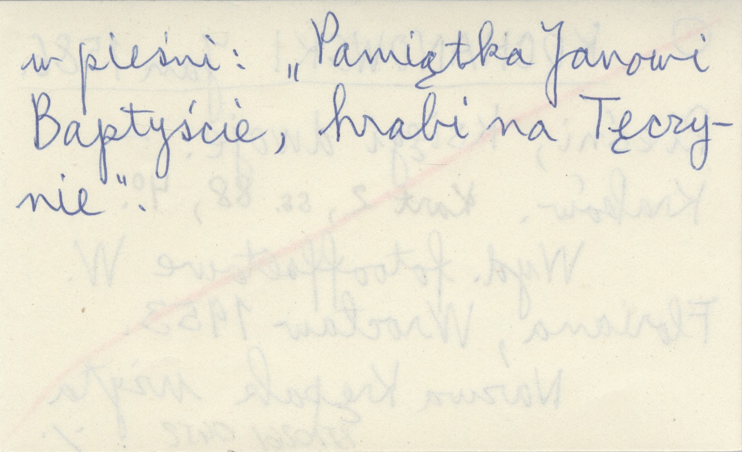 Kraków , Kart 2, 88 s., 4°. Nazwa Krępak użyta w pieśni: "Pamiątka Janowi Baptyście, hrabi na Tęczynie". Wyd. fotooffsetowe W. Floriana, Wrocław 1953.