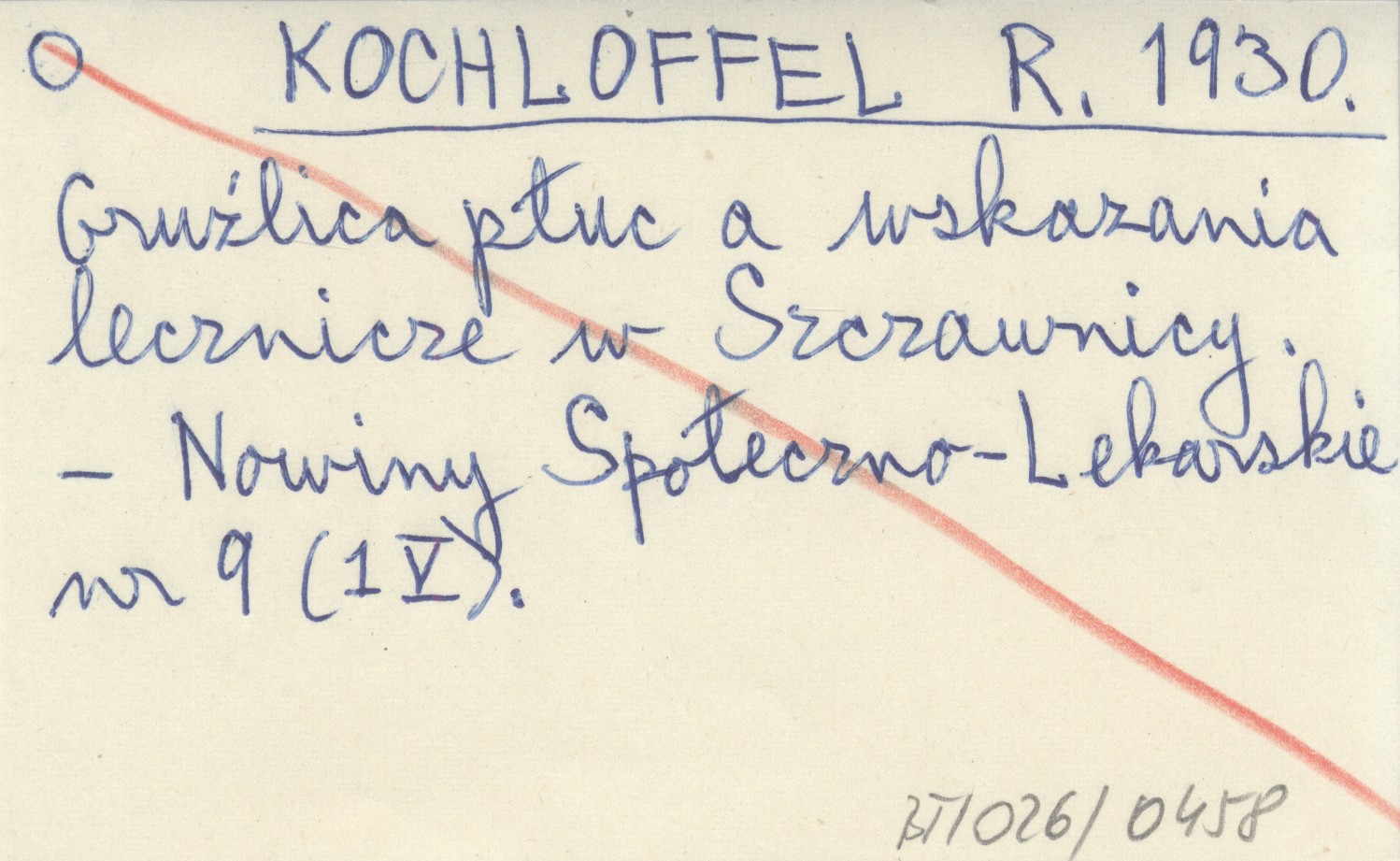KOCHLOFFEL R. 1930 Gruźlica płuc a wskazania lecznicze w Szczawnicy.