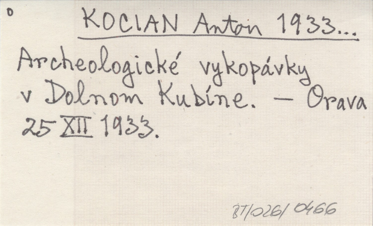 KOCIAN Anton 1933... Archeologické vykopávky v Dolnom Kubíne.