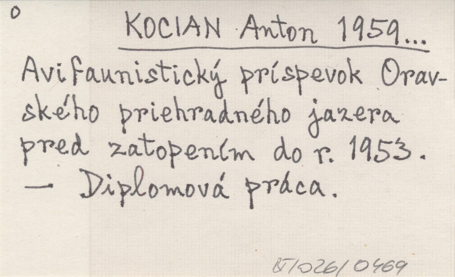KOCIAN Anton 1959... Avifaunistický príspevok Oravského priehradného jazera pred zatopením do r. 1953.