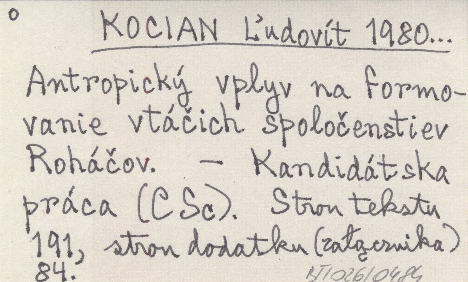 KOCIAN Ľudovít 1980... Antropický vplyv na formovanie vtáčich spoločenstiev Roháčov.