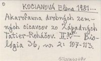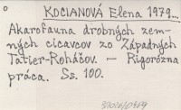 KOCIANOVÁ Elena 1979... Akarofauna drobných zemných cicavcov zo Západných Tatier-Roháčov.