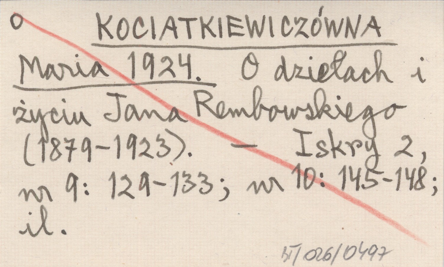 KOCIATKIEWICZÓWNA Maria 1924 O dziełach i życiu Jana Rembowskiego (1879-1923).