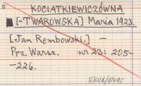 KOCIATKIEWICZÓWNA [-TWAROWSKA] Maria 1923 [Jan Rembowski.].