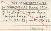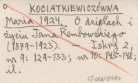 KOCIATKIEWICZÓWNA [-TWAROWSKA] Maria 1924 O dziełach i życiu Jana Rembowskiego.