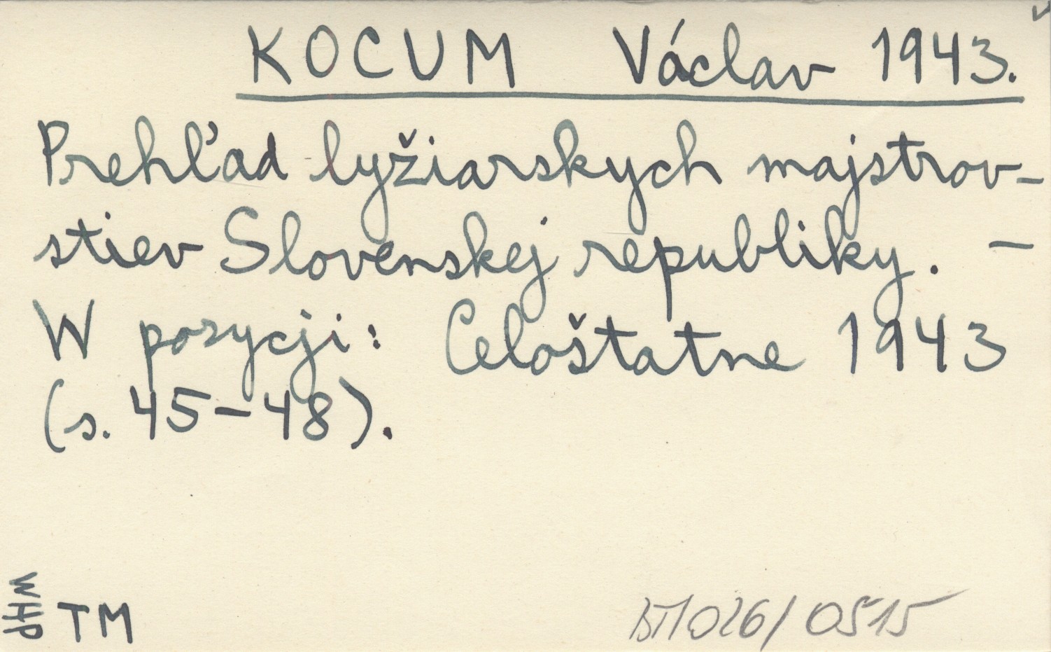 KOCUM Václav 1943 Prehľad lyžiarskych majstrovstier Slovenskej republiky.