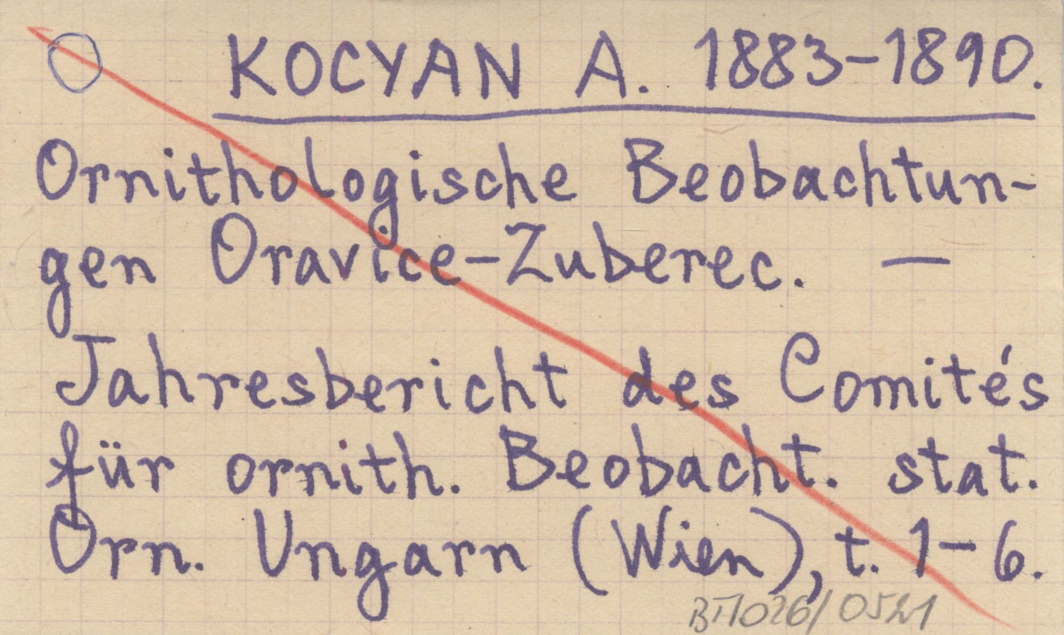 KOCYAN A. 1883-1890 Ornithologische Beobachtungen Oravice-Zuberec.