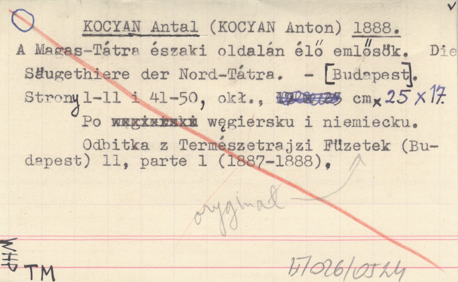 KOCYAN Anton KOCYAN Antal 1888 A Magas-Tátra északi oldalán élő emlősök. Die Säugethiere der Nord-Tátra.
