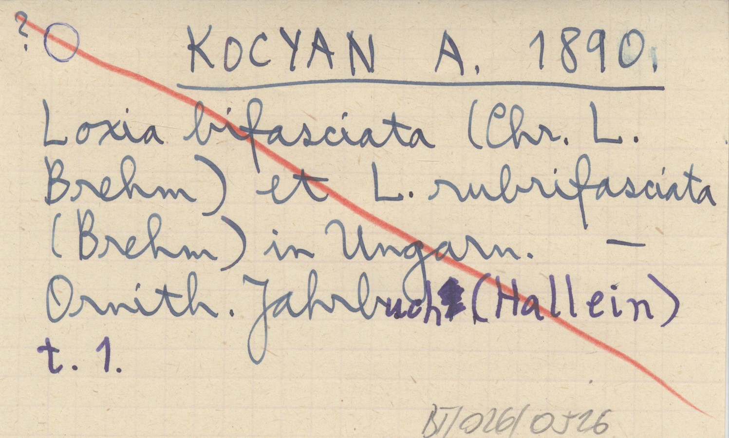 KOCYAN A. 1890 Loxia bifasciata (Chr. L. Brehm) et L. rubrifasciata (Brehm) in Ungarn.