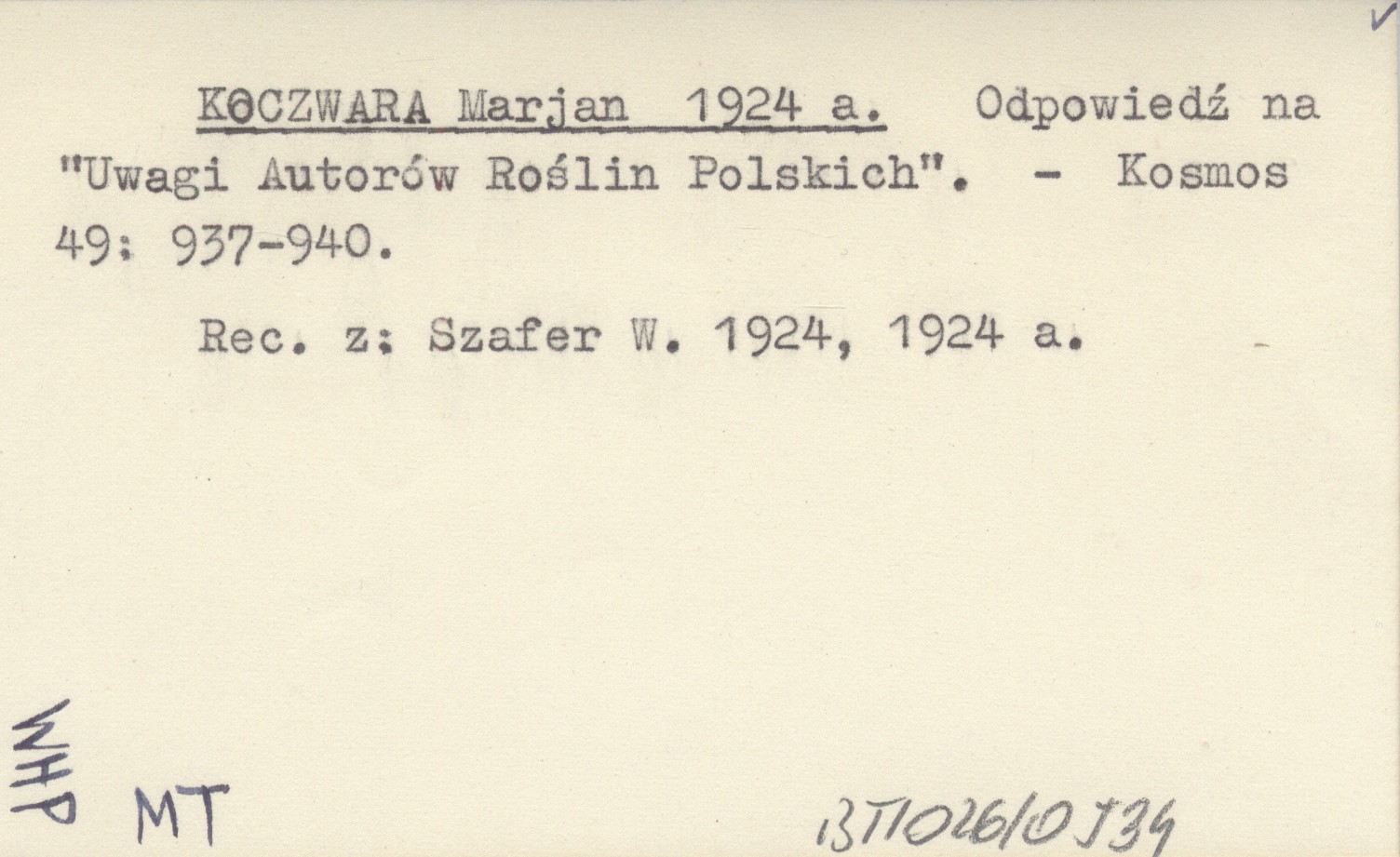 KOCZWARA Marjan 1924 a Odpowiedź na "Uwagi Autorów Roślin Polskich".