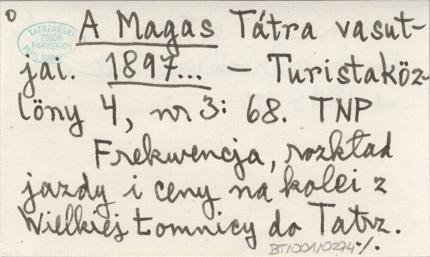 Turistaközlöny, 4, nr 3: 68. Frekwencja, rozkład jazdy i ceny na kolei z Wielkiej Łomnicy do Tatrz. Łomnicy i z Tatrz. Szczyrby do Szczyrbskiego Jeziora w 1896 r.