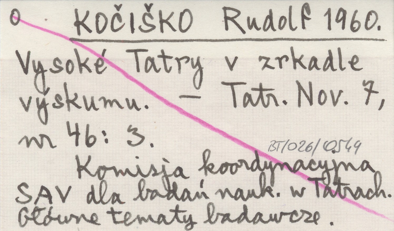 KOČIŠKO Rudolf 1960 Vysoké Tatry v zrkadle výskumu.