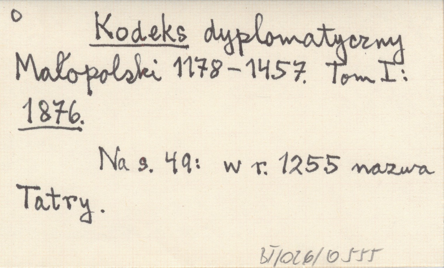 , Na s. 49: w r. 1255 nazwa Tatry.