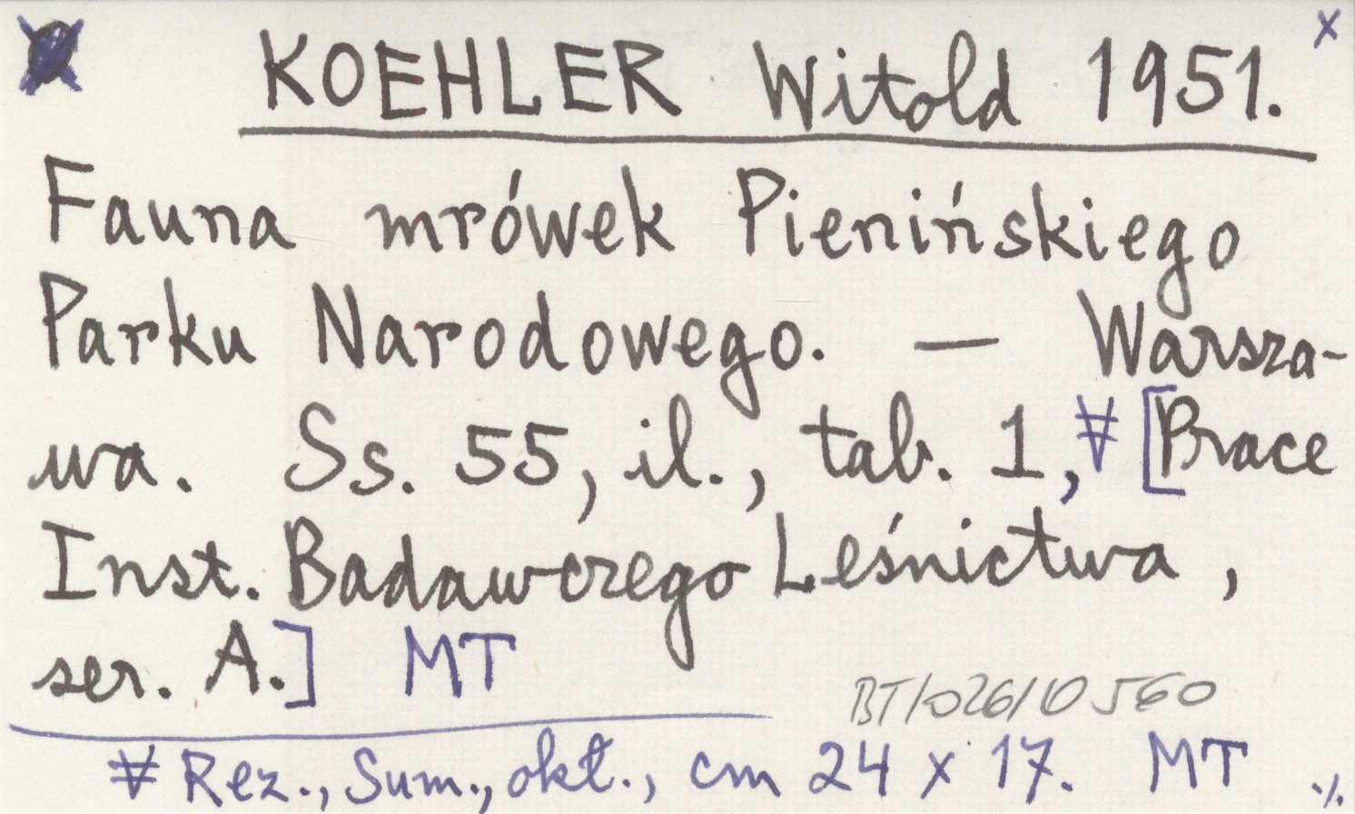 KOEHLER Witold 1951 Fauna mrówek Pienińskiego Parku Narodowego.